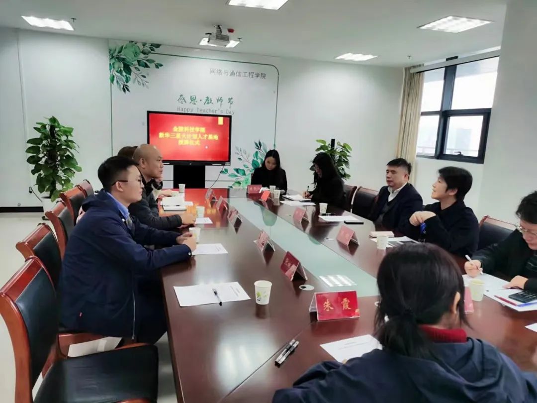 2022年11月17日下午,金陵科技学院新华三星火计划人才基地授牌仪式在金陵科技学院科技楼举行。南京建策科技董事长王继锋、网络与通信工程学院院长田锦、书记陈健、新华三集团江苏代表处领导岳总等一行人出席本次授牌仪式。